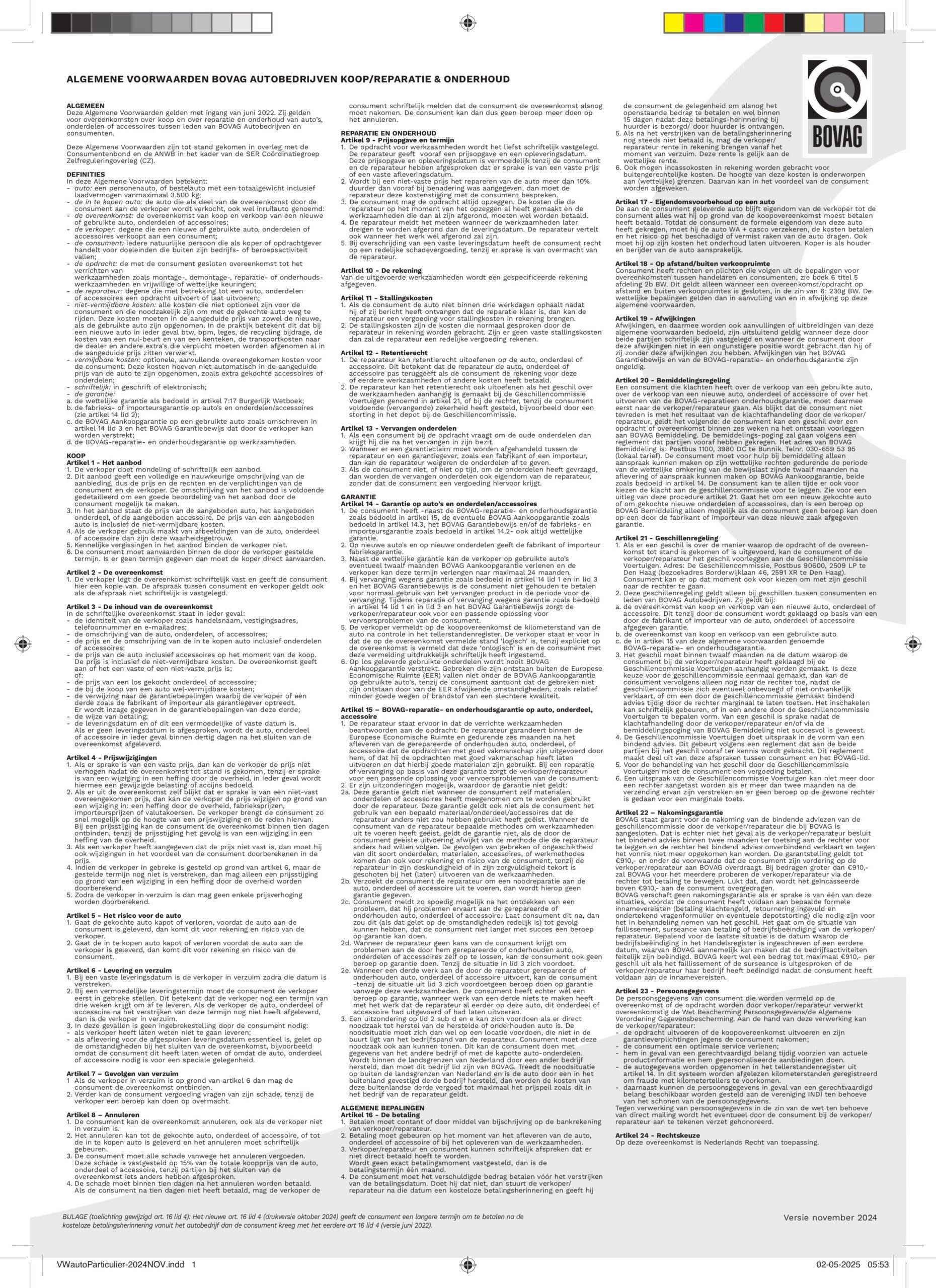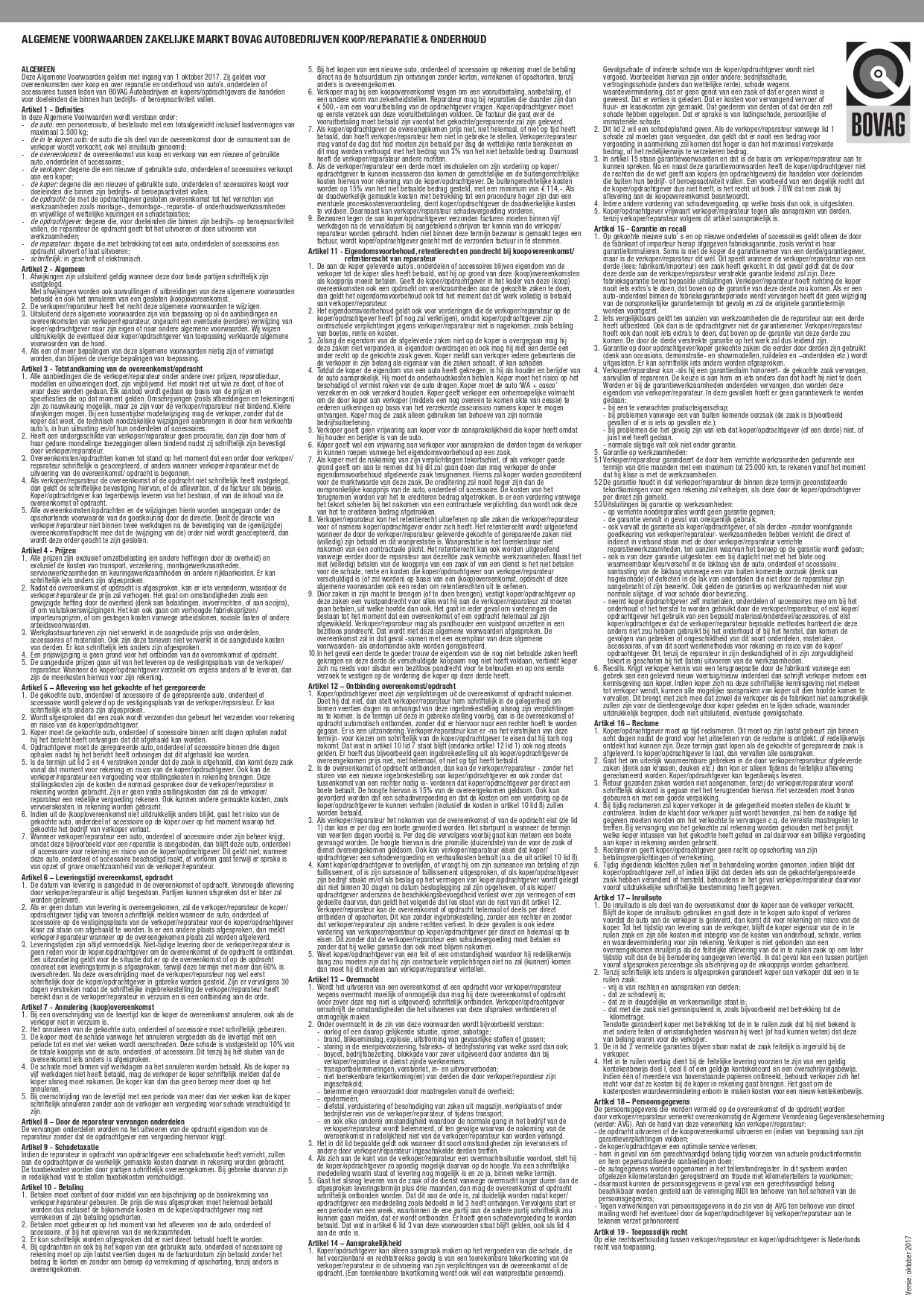 Bovag standaardvoorwaarden